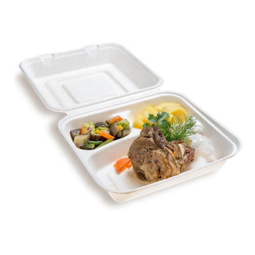 850ml Disposable Bagasse Bento Boxes With Bagasse Lid/PP Lid/PET Lid
